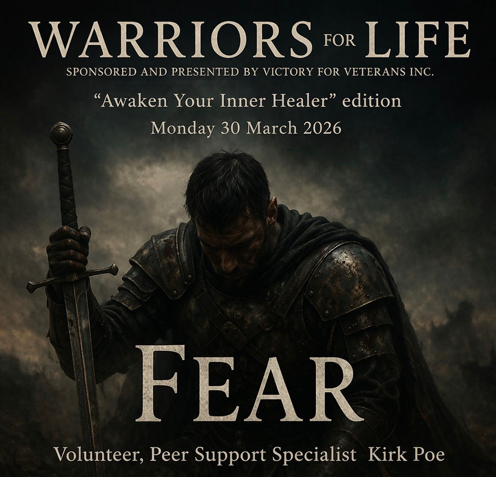 Join Kirk and Friends, TONIGHT and let's get together online for the Warriors for Life (WFL) as we discuss "Fear!" and mental health. How does "Fear" affect your mental health and how do we overcome it.