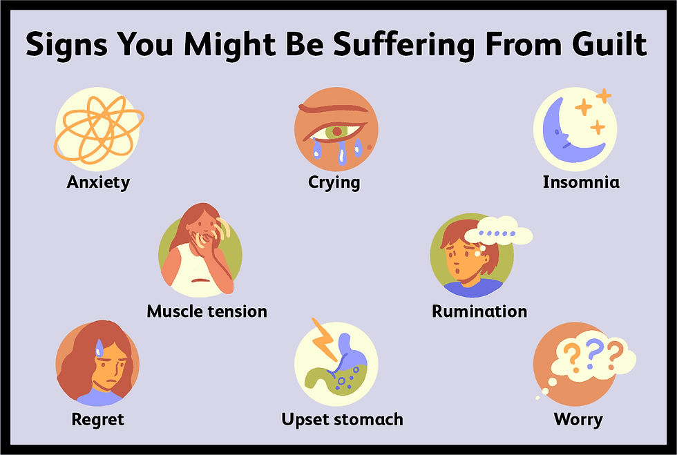 Emotional Distress: The guilt triggers other emotions like anxiety, sadness, or shame.