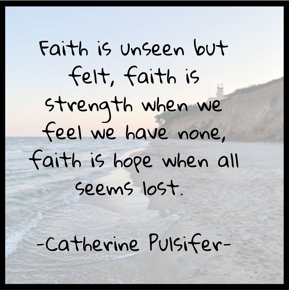 “Faith is unseen but felt, faith is strength when we feel we have none, faith is hope when all seems lost.” — Catherine Pulsifer