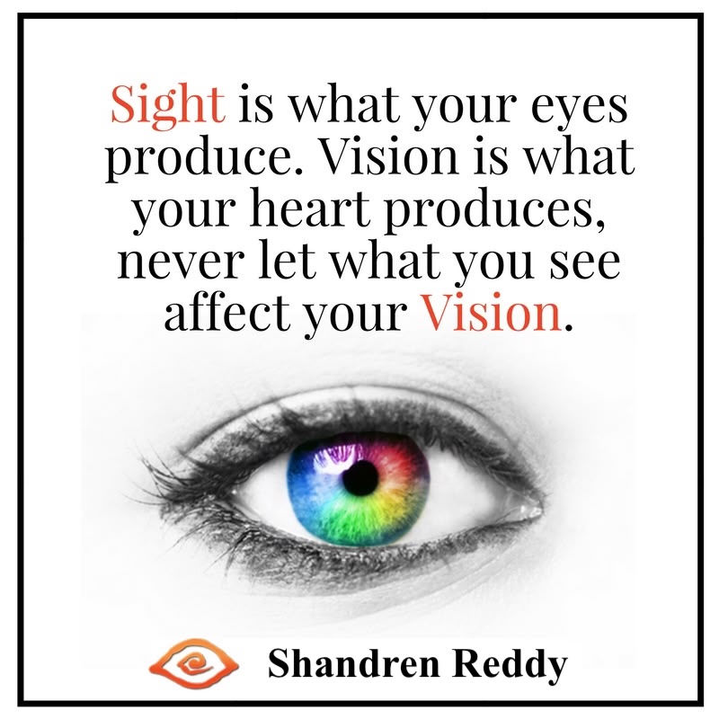 “Sight is what your eyes produce. Vision is what your heart produces, never let what you see affect your vision.” — Shandren Reddy