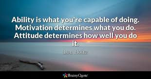 “Ability is what you’re capable of doing. Motivation determines what you do. Attitude determines how well you do it.” — Lou Holtz